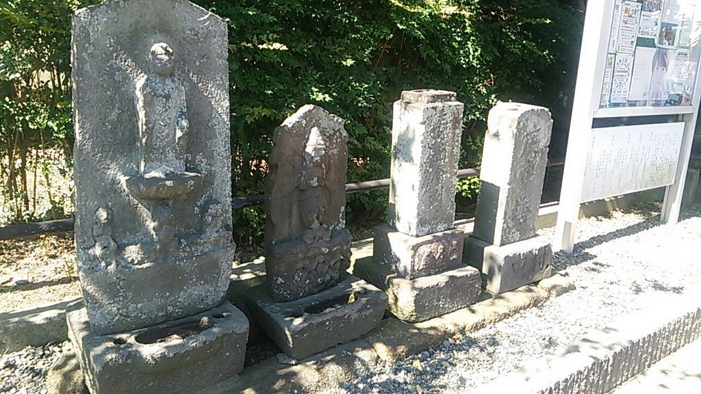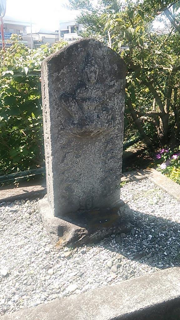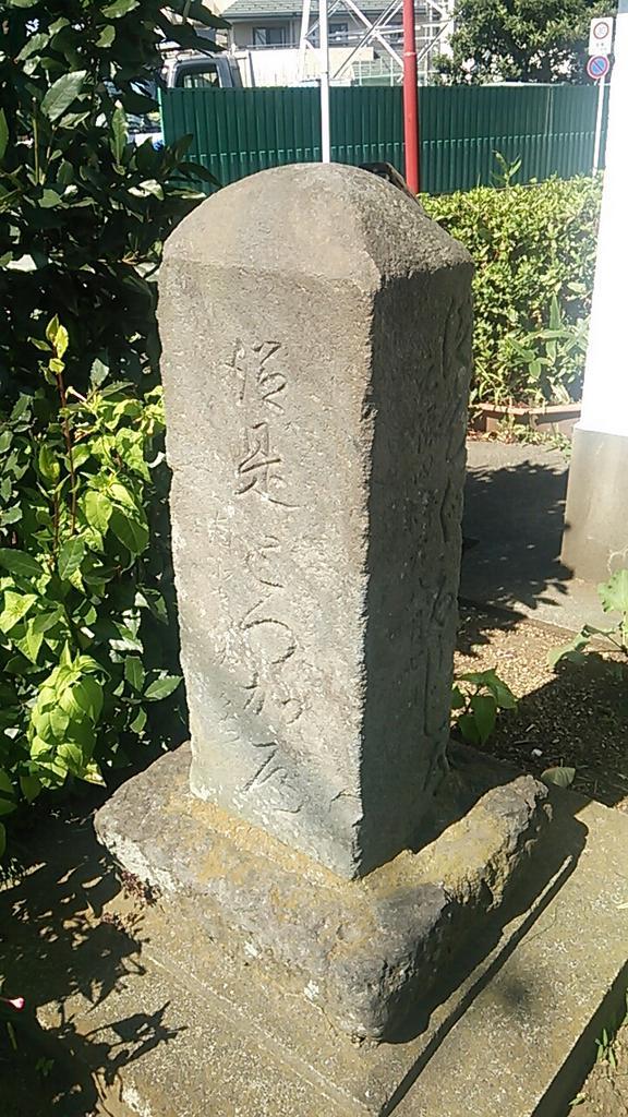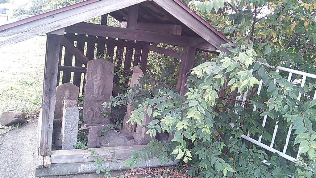 左手に東芝系の工場、右手に資生堂の工場を見て更に行った先右手に青木神社があります。つい先日ここは階段登っているので本日はパスです。この先左手に下写真の庚申塔が見られます。
