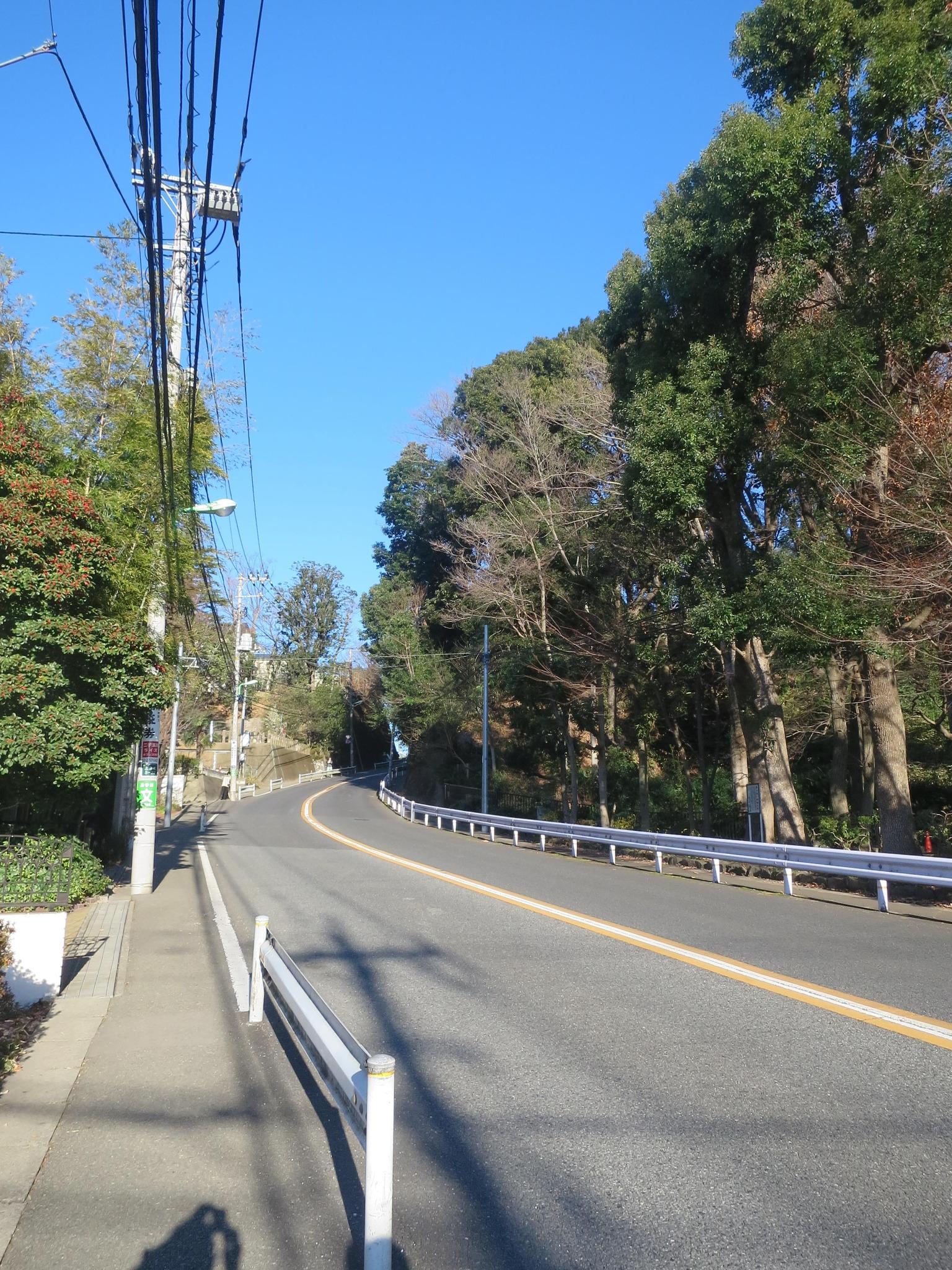 玉川高校の所で左折し、稲荷坂(下写真)を登って行きます。環状八号を越えて地下化されたらしい上野毛駅を過ぎて上野毛通りを進んで行きます。