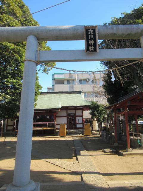 道なり右に曲がって細めの道になります。曲がってすぐの所の左手に日支事変従軍軍馬遺霊碑があります。続いては上写真の穴川神社です。暫くは余り広くはない道の右側歩道を歩きましたがやがてモノレールの走っている道と合流です。