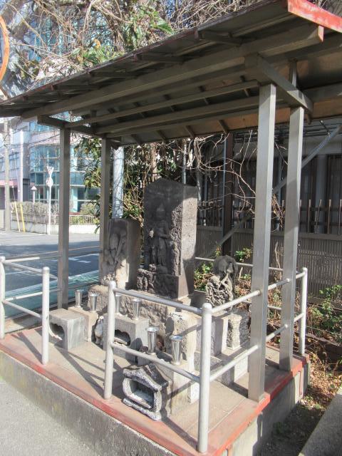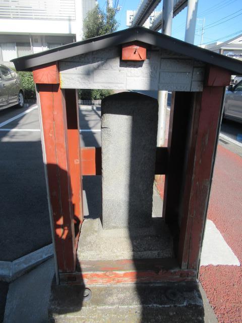 船橋競馬場駅を右手に見て京成線の踏切を越えてからは現千葉街道に合流します。気温は高いものの風が強く歩き難い時が有ります。谷津駅を越えた先の左手に上写真の庚申塔です。
