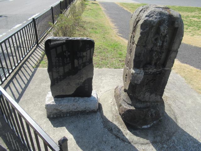 暫く歩いて街道右手に上写真の庚申塔です。この庚申塔は左右に文字が書かれていて道標を兼用しています。更に歩いて行くと八幡宿(やわたしゅく)に入って行きます。