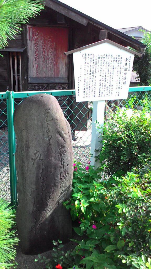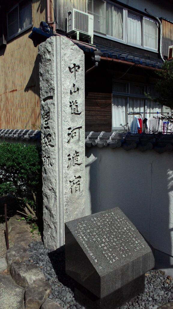 暫く裏道の歩き易いところを行って、相川手前左側に垂井の追分道標で、右東海道大垣道と読めます。中山道と美濃路の追分という事のようです。相川を渡ると垂井の街並で以前は旅籠だった亀丸屋や、本陣跡の碑などが見れます。