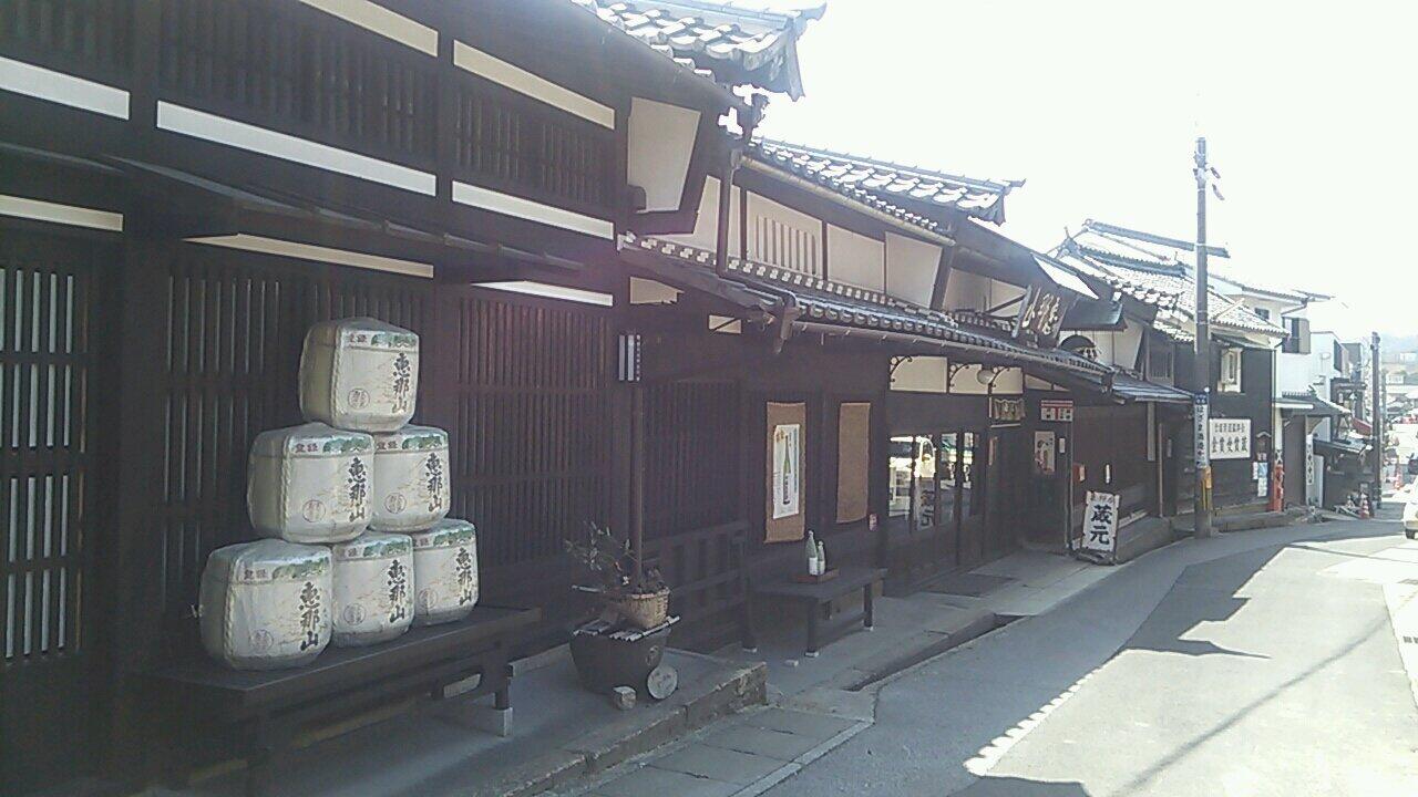 赤坂神社を右手に見た先の地蔵堂の所で右折します。これよりうとう峠の道標を左手に見て、鵜沼宿の中心部へと入って行きます。ここは整備が良く出来ていて、全体として大変綺麗です。先ず目に付くのが篝火蔵元菊川という酒屋さんの建物です。以前は武藤醸造といって政治家武藤嘉文が社長も務めた所です。