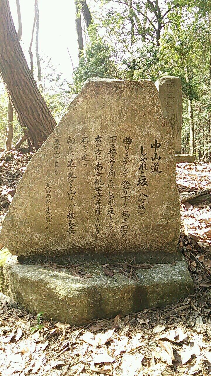 その後街道は名神高速横の裏道となり、ゆるやかな坂を登ります。その高速がトンネルとなっている辺りが小摺針峠です。その後T字路を右に折れ急坂を登ると望湖堂跡神の宮(上写真)です。暗くなり始めた遠方を見ると琵琶湖の湖面です。