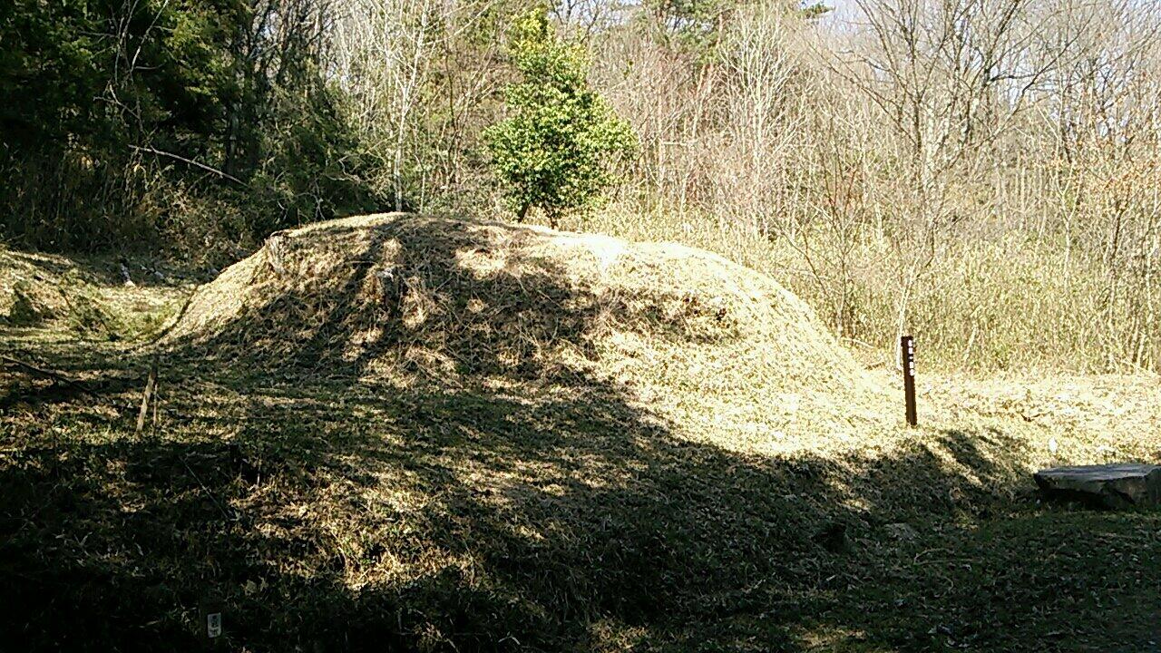 貨物線の踏切りを越えて行った先の昼飯(ひるい)という所で左手に寄り道します。昼飯大塚古墳という大きな古墳があります。かなりの部分は復元かも知れませんが、整備されていて上まで登れます。9世紀末頃に作られた前方後円墳で長さは150メートルほどもあります。