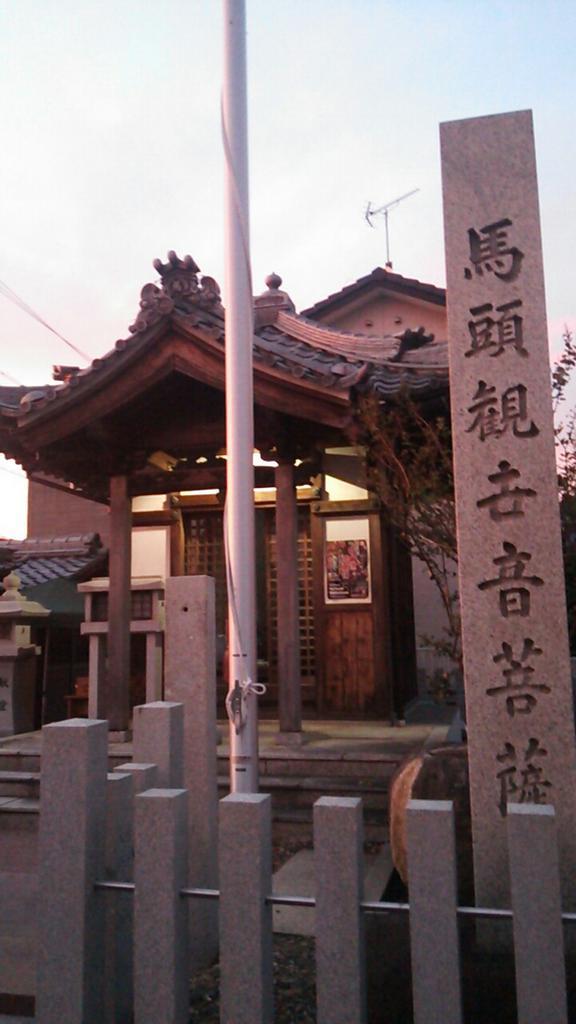長良川を渡る頃にはもう夕焼けで、秋の日没は早いです。河渡橋を渡って右に降り、橋の下を潜って左側土手を暫く歩きます。土手の車道は通行が多くかなり危ないですが、何とか渡り、そこに有るのが下写真の馬頭観世音菩薩堂です。街道はこの先で右折して西に向かいますが、既に夕闇になりつつあるので、このまま土手道を南下し穂積駅を目指します。
