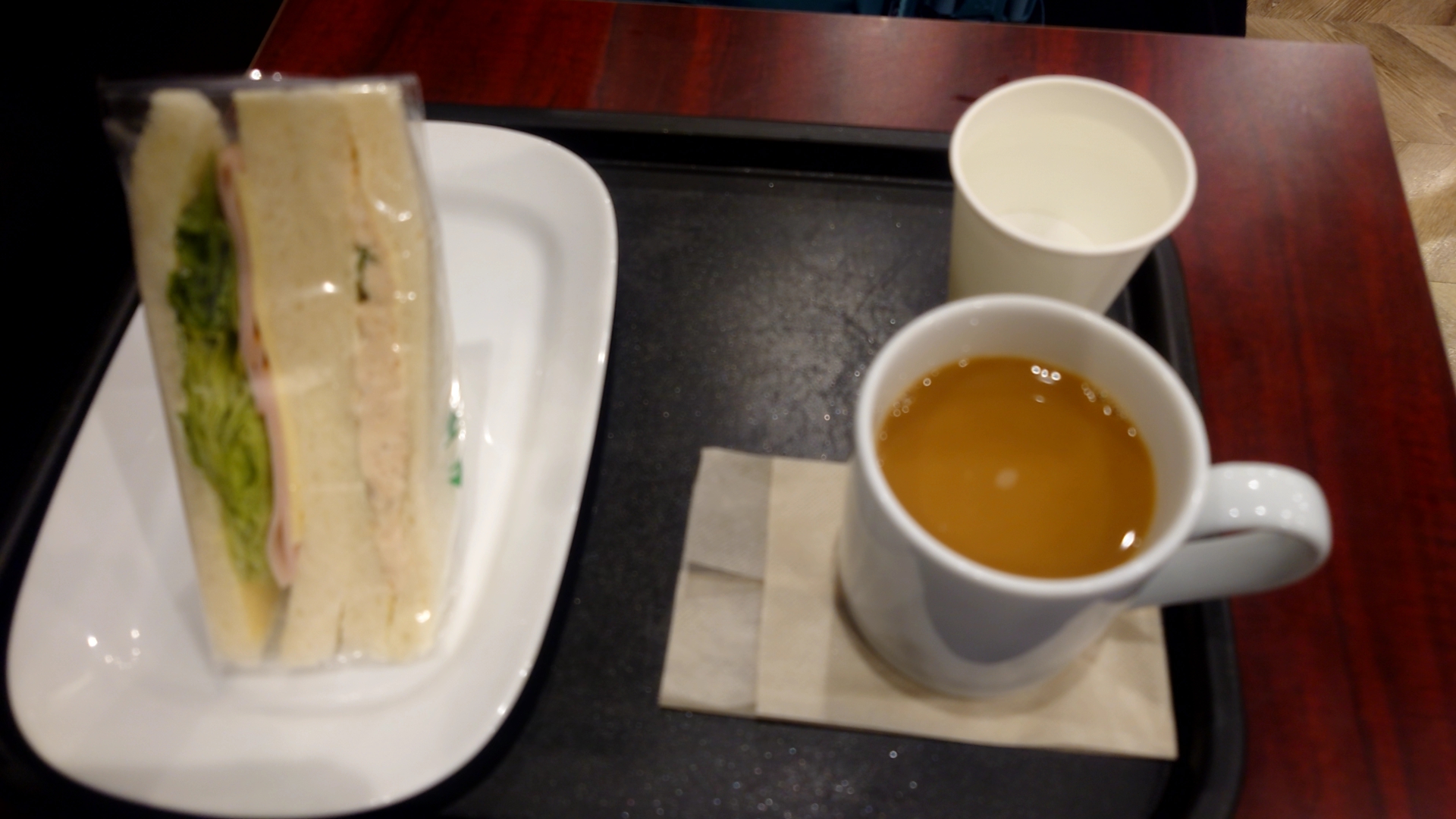 | ブレンドコーヒー(350円)+サンド(330円) | (2025/11)以前だったら190円+230円といった価格だったのに完全にインフレ。 | ||